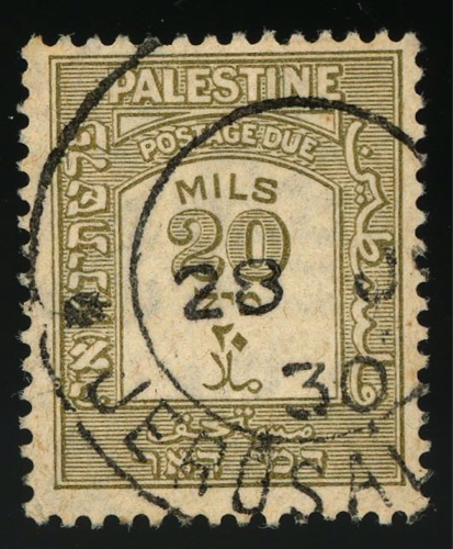 1928 Palestine 20 Millimes - Postage due stamp - Jerusalem Stamp - used