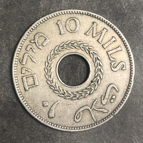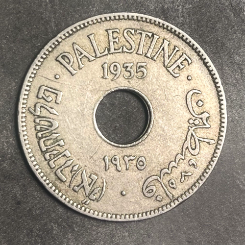 Introducing the 1935 Palestine 10 Mils coin, now available in VF (Very Fine) condition. This historic coin encapsulates a piece of Palestine's rich numismatic heritage, showcasing intricate design details and cultural significance. While the actual coin condition may vary slightly from the picture, rest assured, each coin is carefully inspected to ensure its quality and authenticity. Add a touch of history to your collection with this remarkable piece from Palestine.