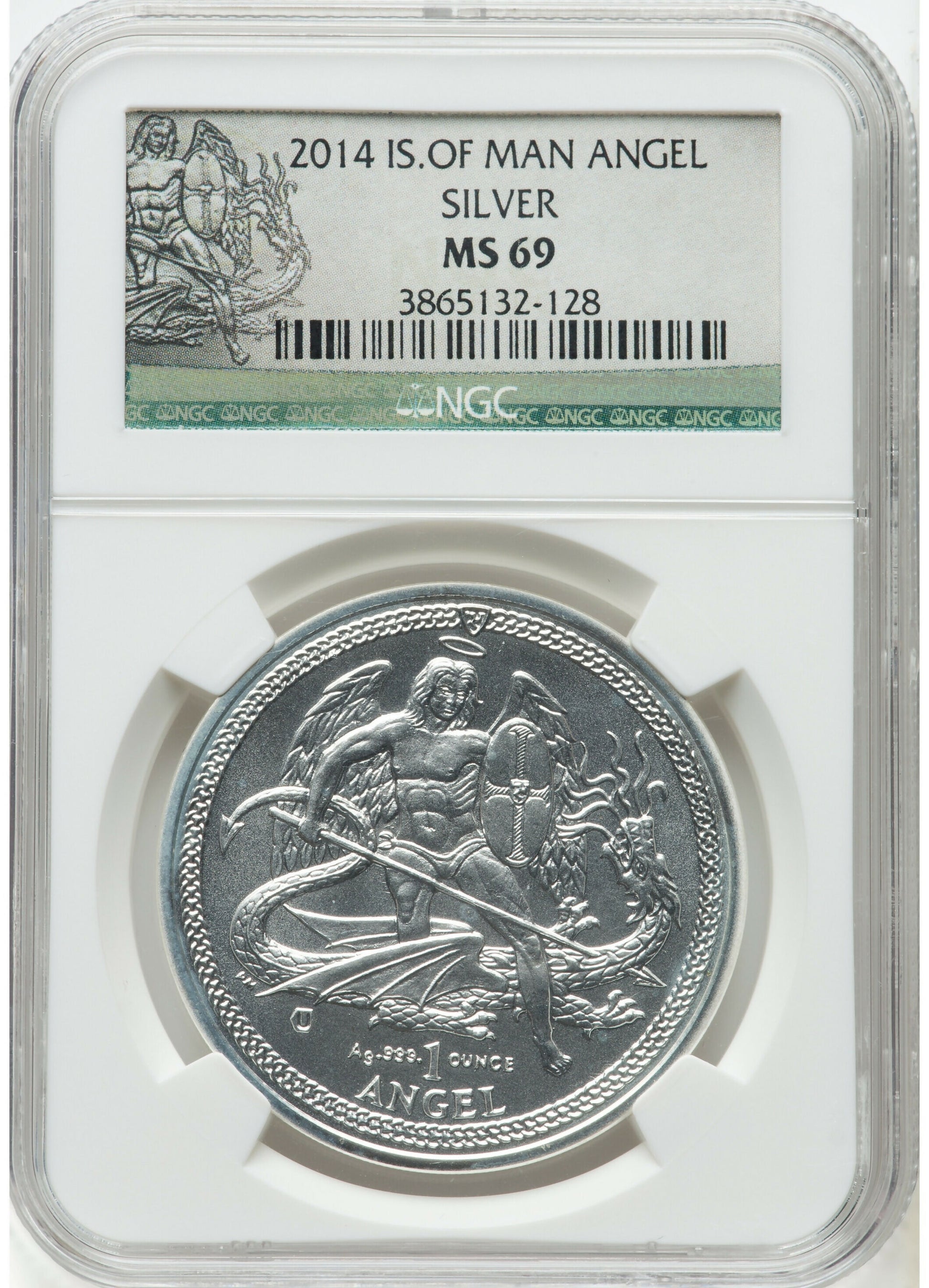 2014 Isle of Man: British Dependency. Angel 1Oz silver.