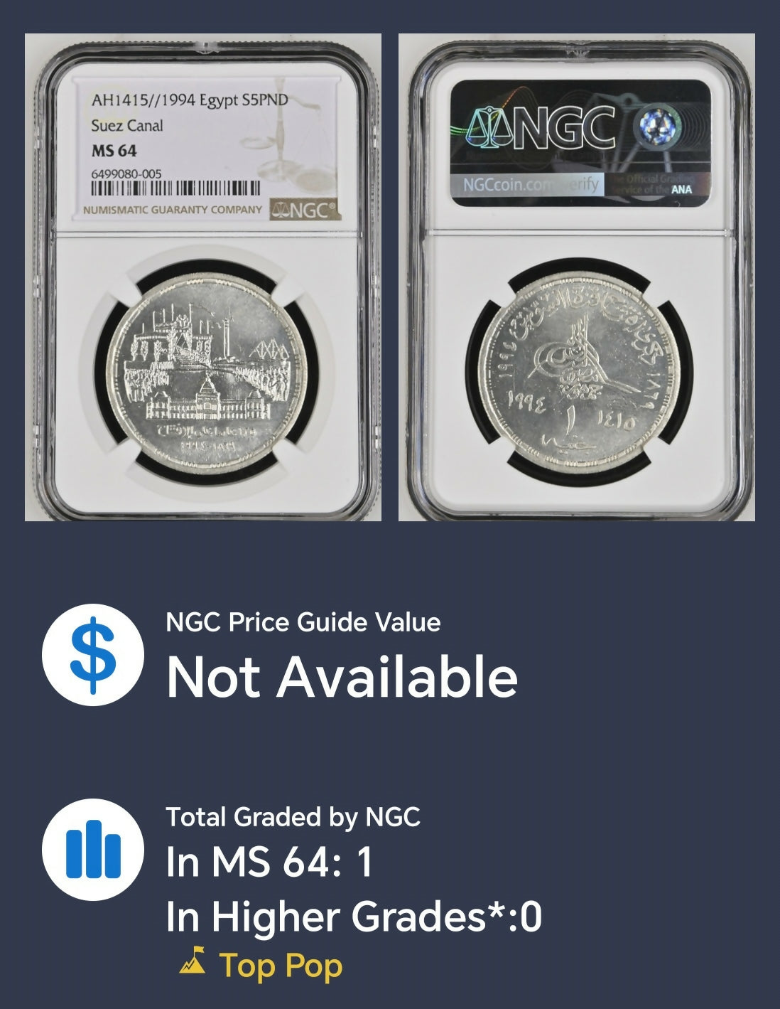 Egypt, 1994, 5 Pounds, Suez Canal. TOPPOP
