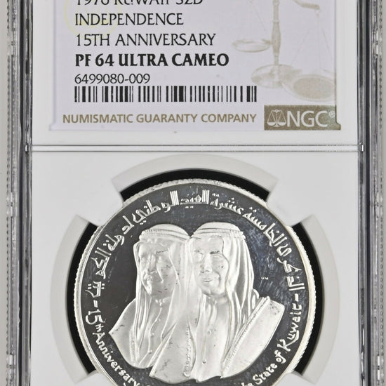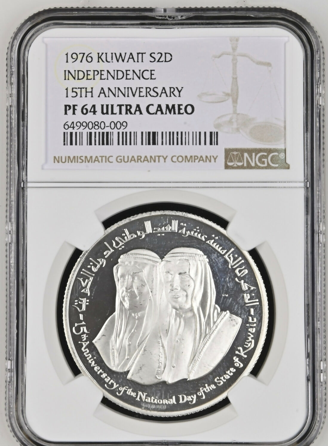 Kuwait, 1976, 2 Dinar, INDEPENDENCE 15TH ANNIVERSARY