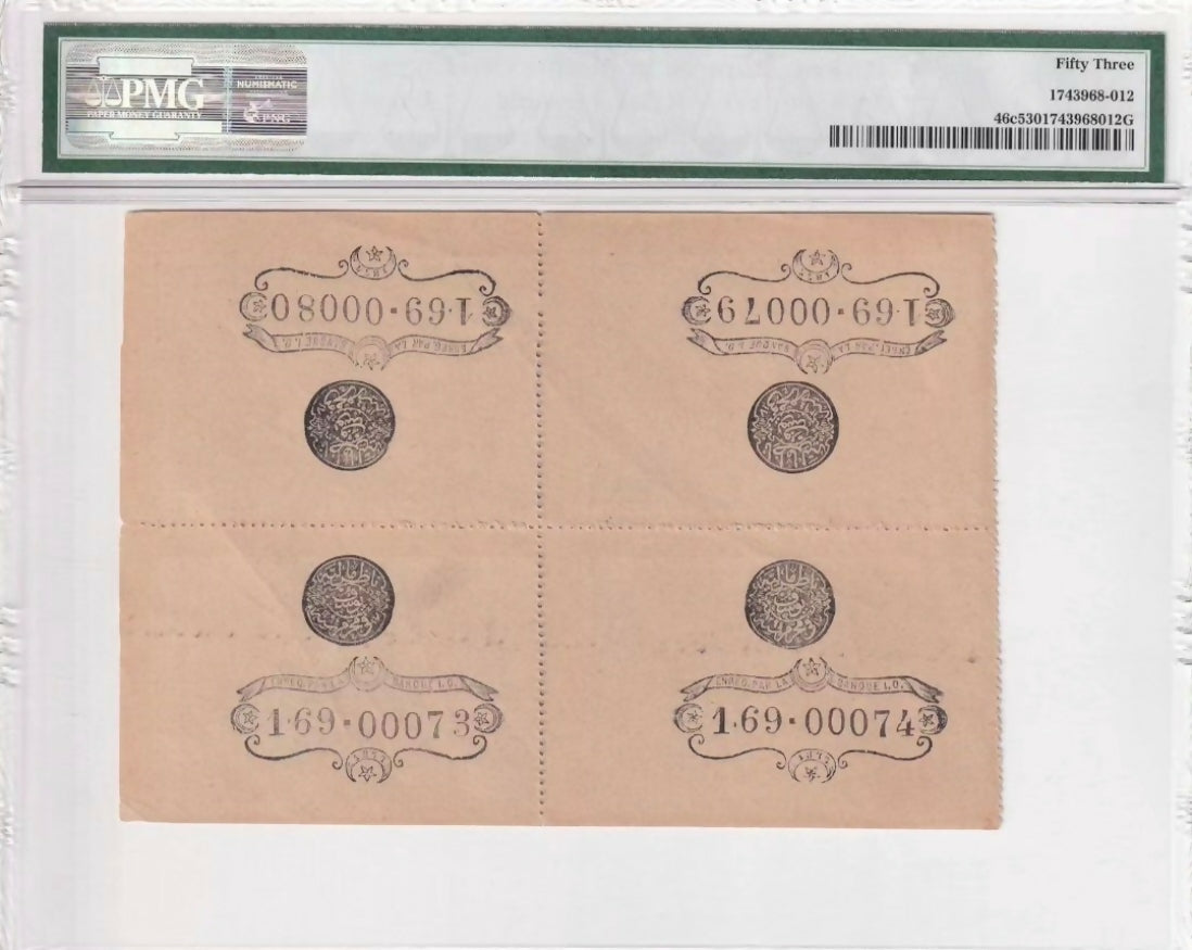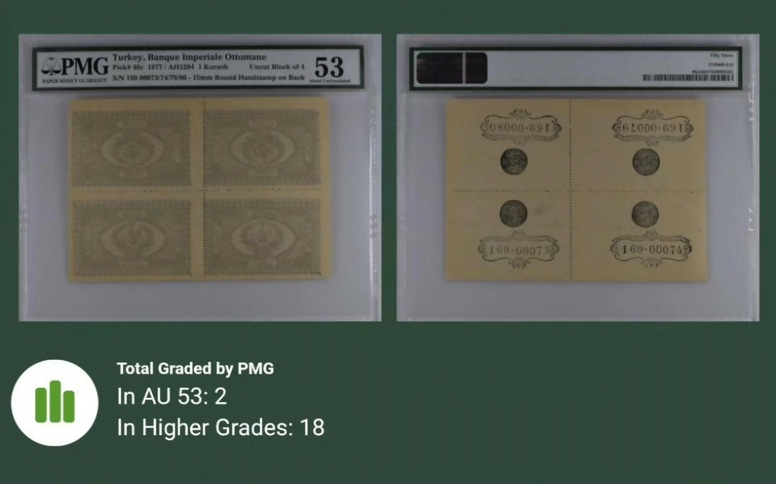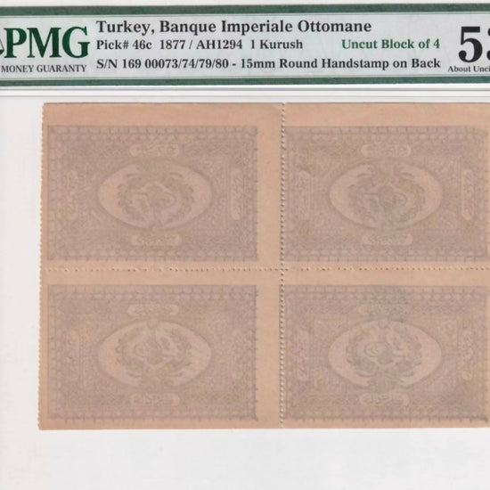 Ottoman Empire, 1877, 1 Kurush, Pick 46c. ?Uncut Block Of 4 notes ?