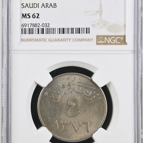 Saudi Arabia - AH 1376 (1956) - 4 Ghirsh - NGC MS 62