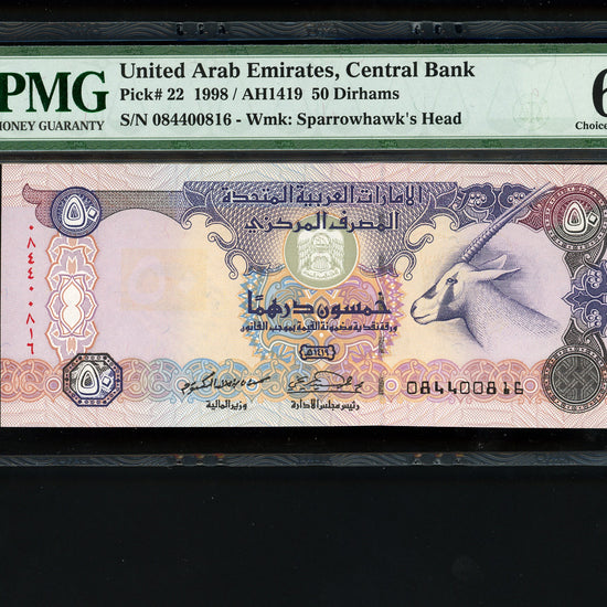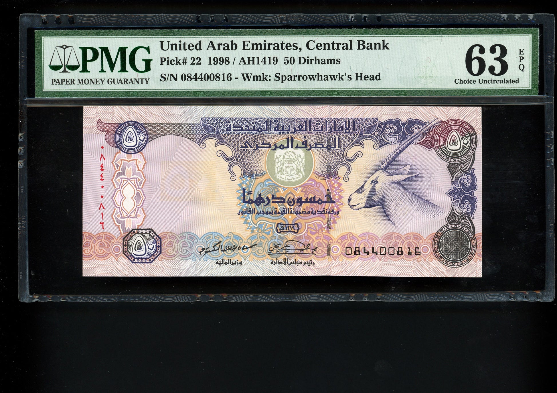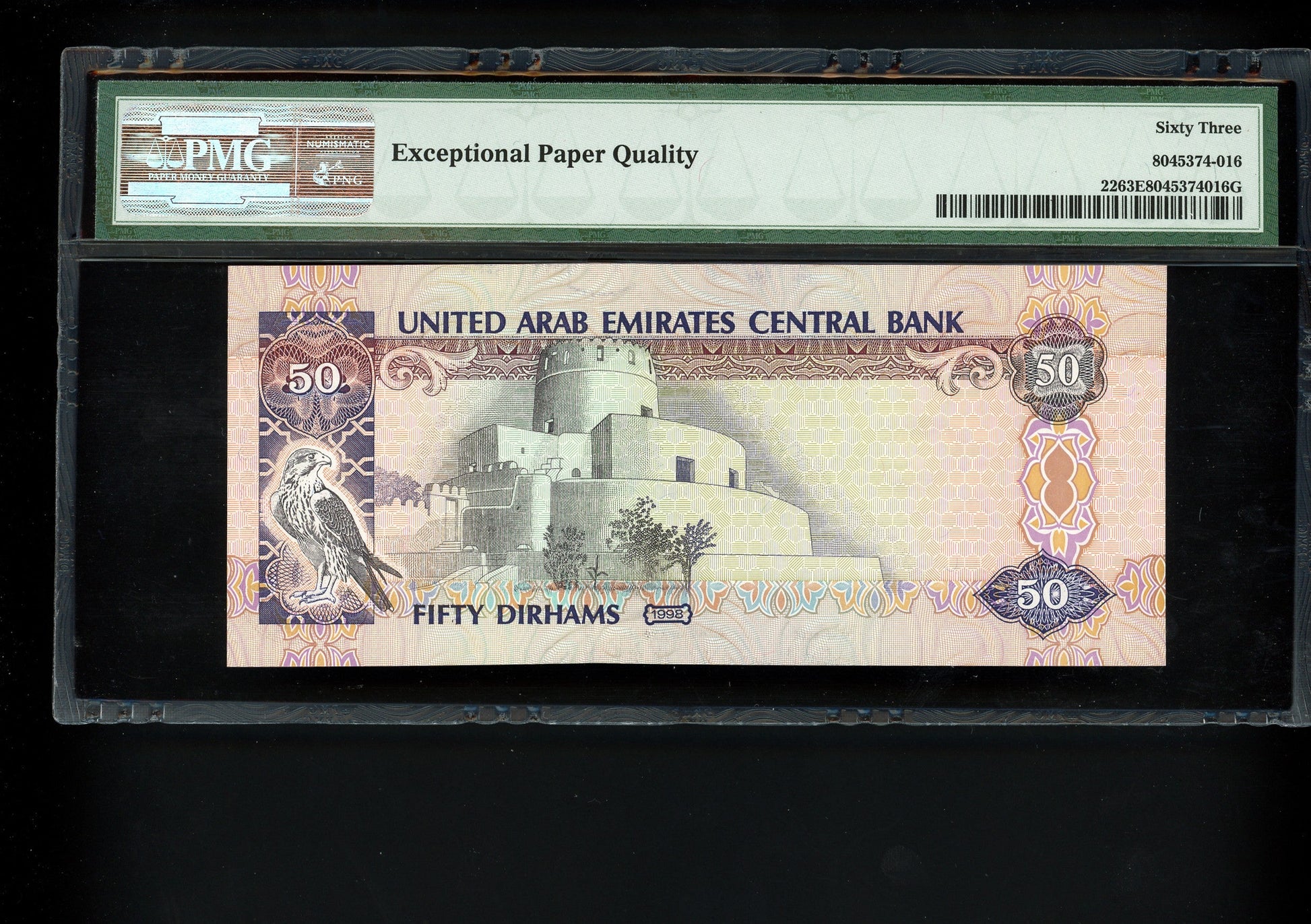 Lot 986: United Arab Emirates - 1998 - 50 Dirhams - PMG 63 EPQ