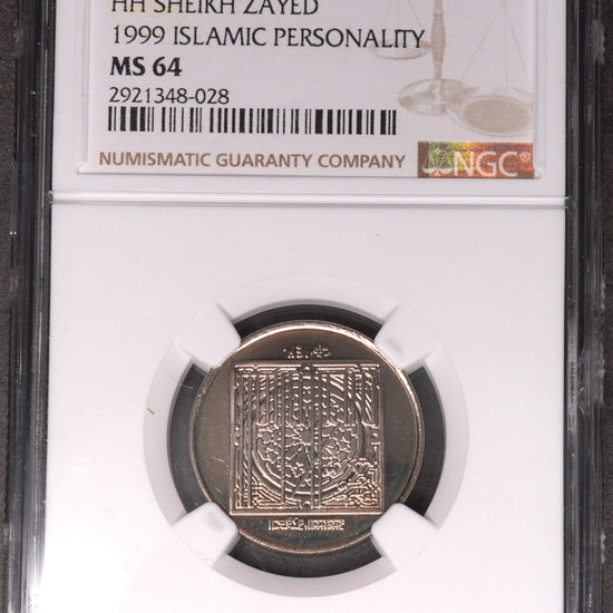 Lot 988: United Arab Emirates - 1999 - 1 Dirham - Sheikh Zayed Islamic Personality of the Year - NGC MS 64