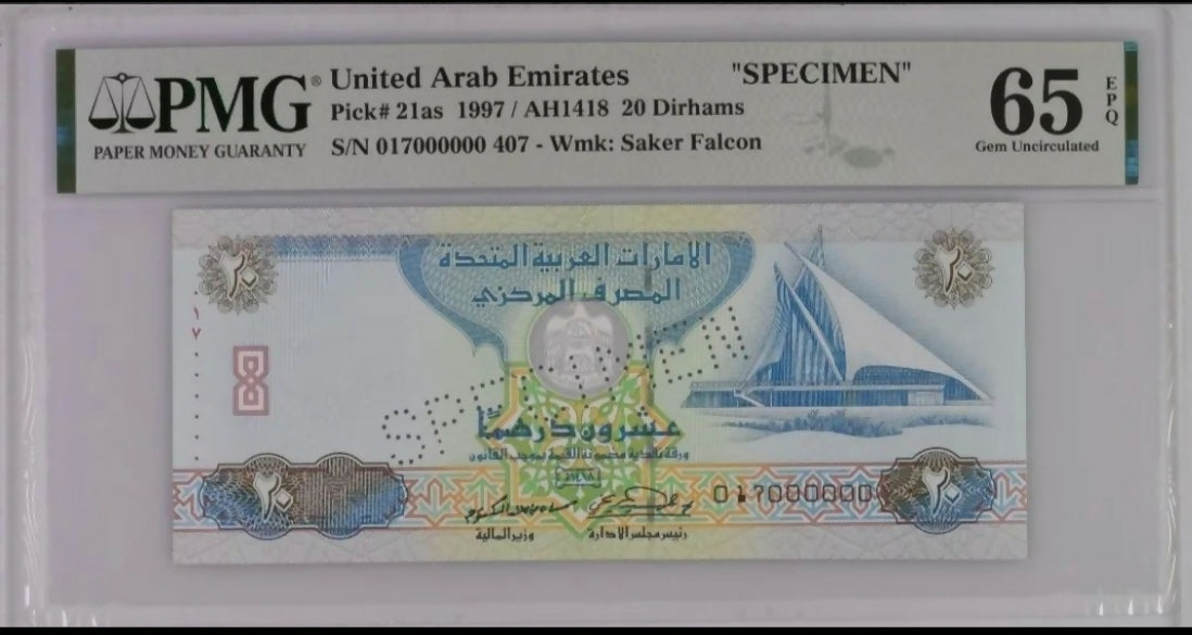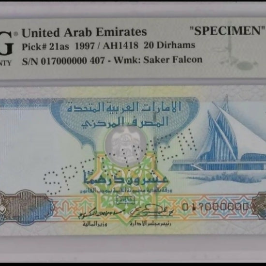 United Arab Emirates,20 Dirhams 1997 SPECIMEN,First edition.