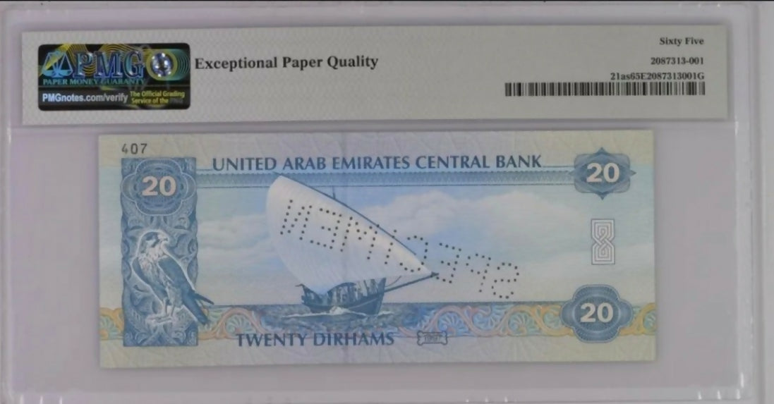 United Arab Emirates,20 Dirhams 1997/2007, p21s, SPECIMEN,First edition.