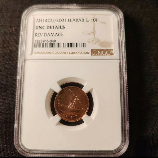 United Arab Emirates, 2001, 10 Fils. REV Damage