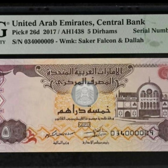 United Arab Emirates, 2017, 5 Dirhams, Serial Number 9