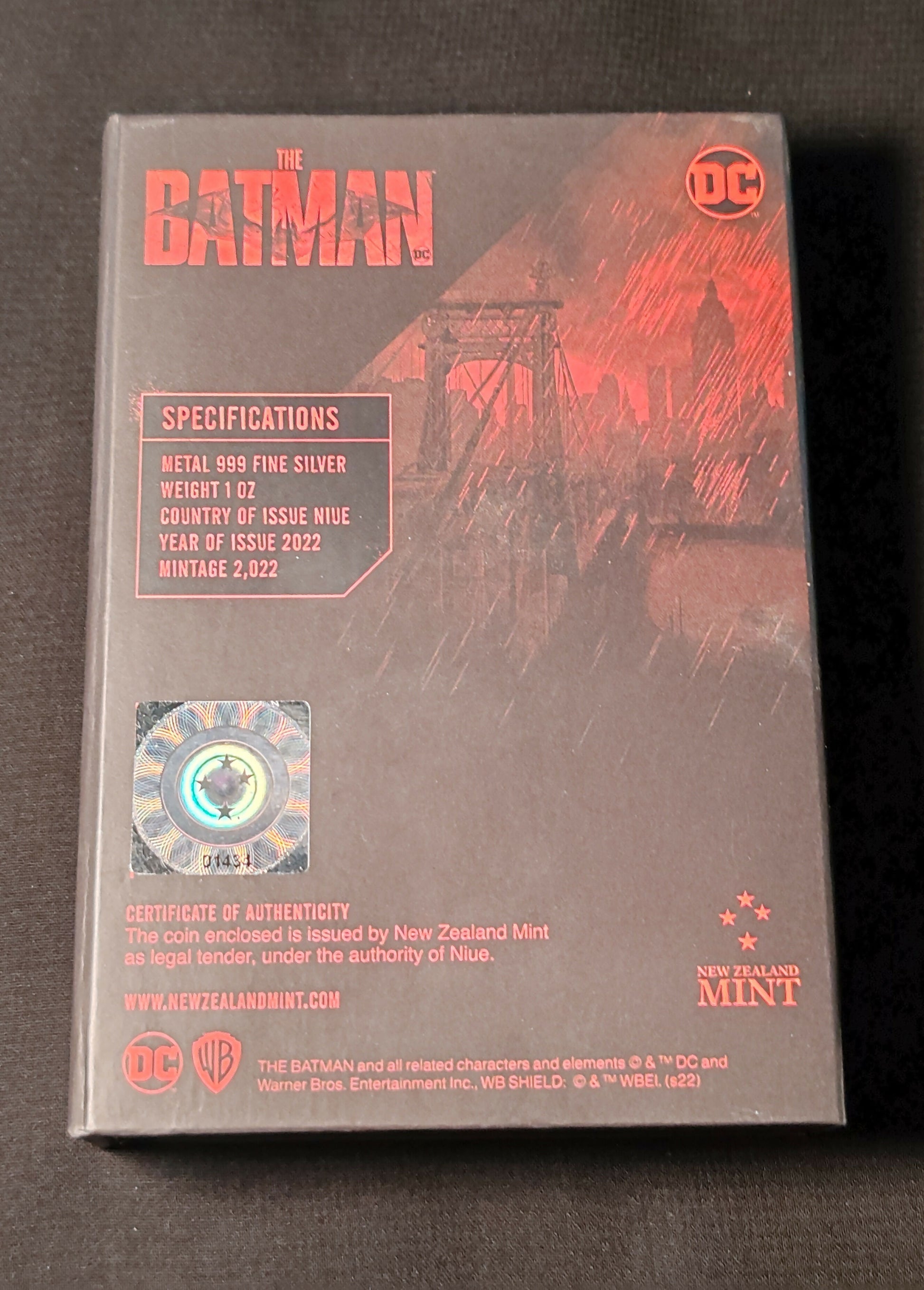 2 Dollars 2022 Niue, 1 ounce silver coin - DC - Batman,I am the shadow.Mintage: 2,022 pieces.