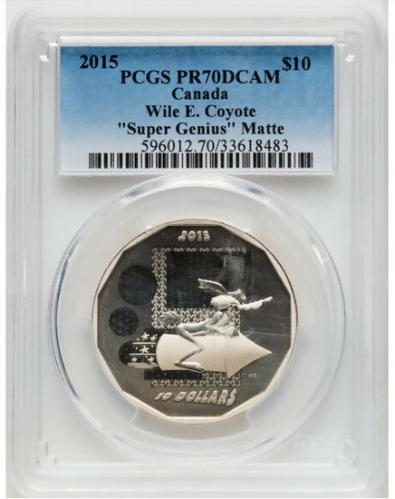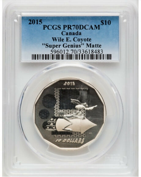 Canada: Matte "Super Genius" 10 Dollars 2015 PR70 Deep Cameo PCGS, Wile E. Coyote