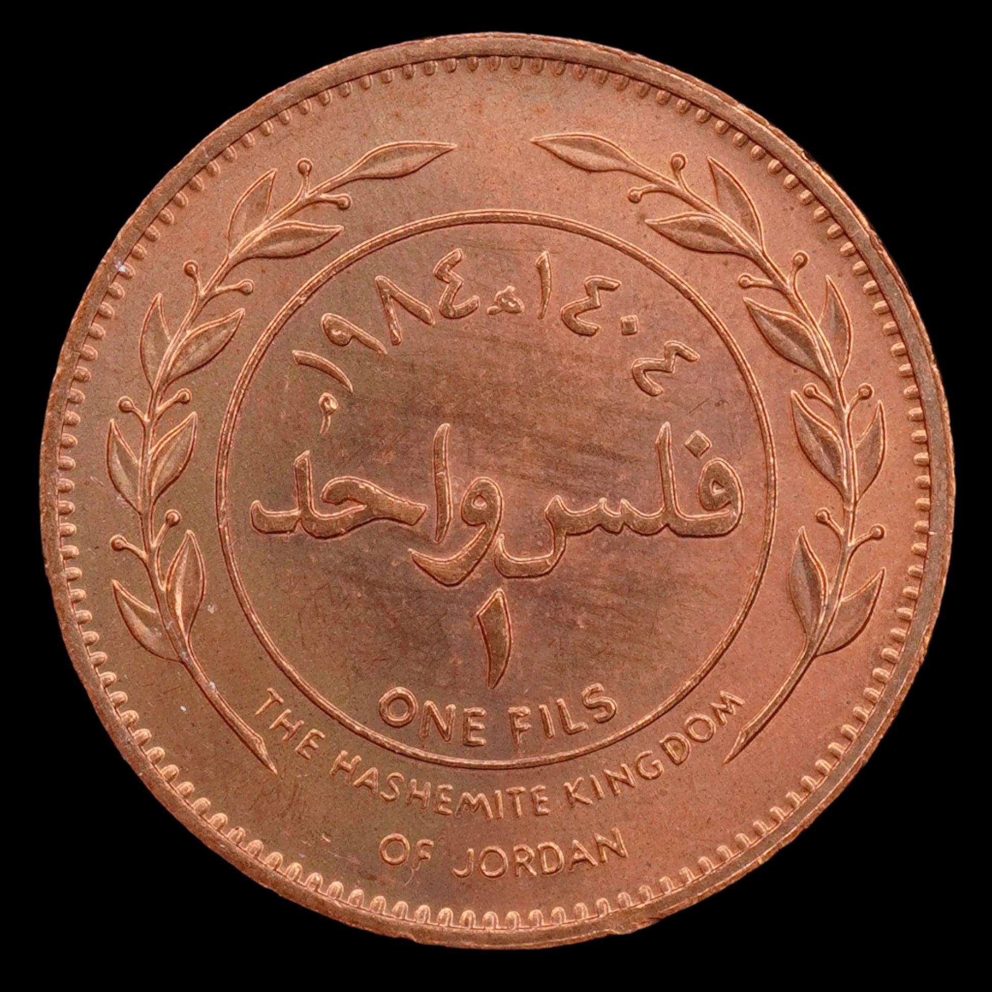 فلس أردني من سنة 1984 بحالة Gem UNC. لون نظيف ولمعان سك ممتاز.