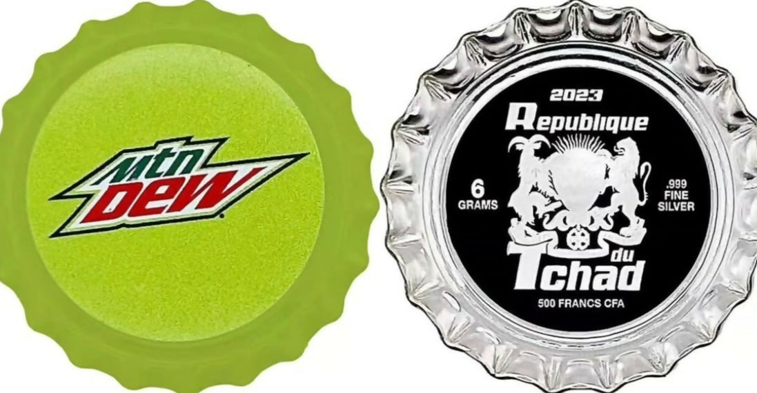 MOUNTAIN DEW Bottle Cap Shape Silver Coin 500 Francs Chad 2023