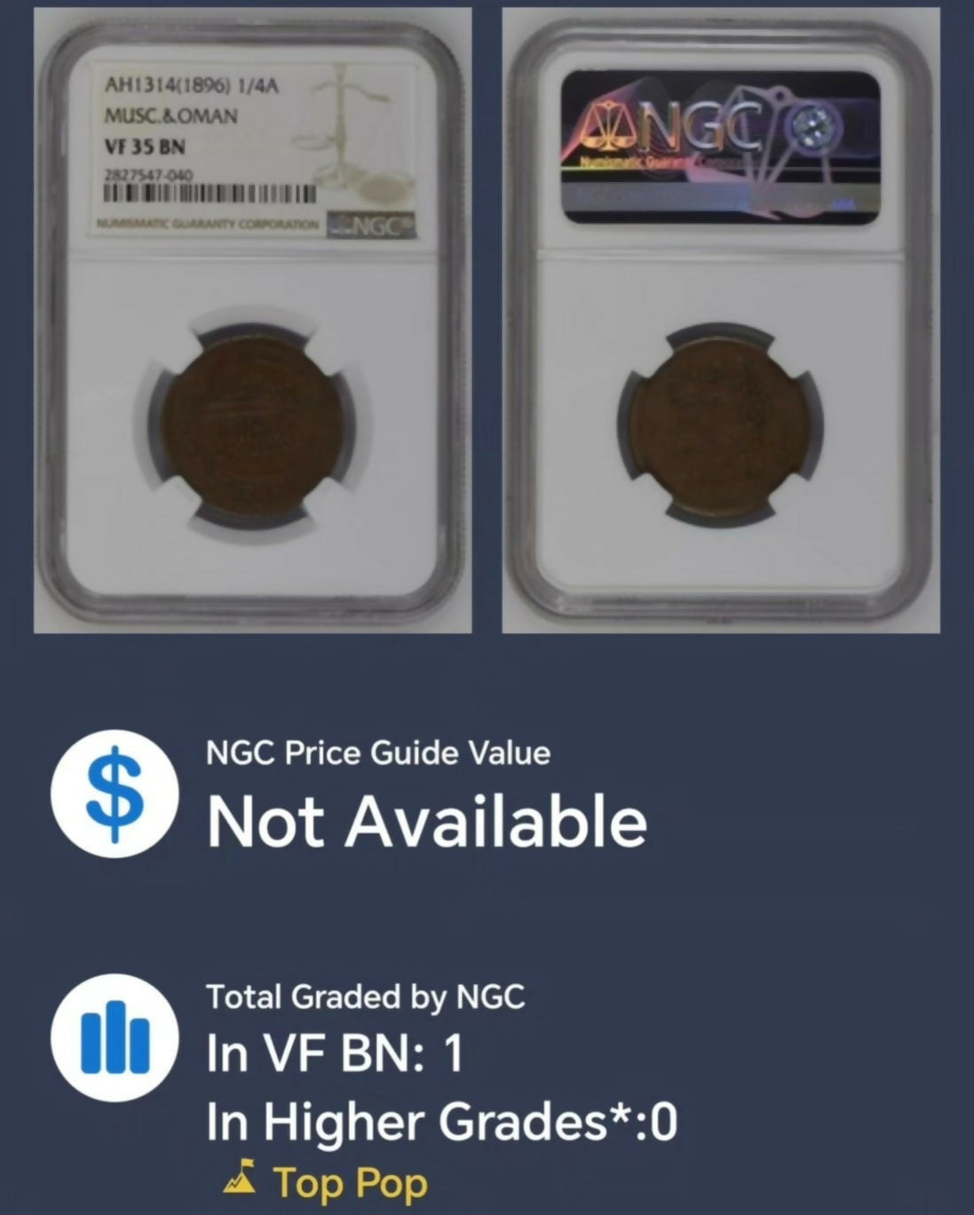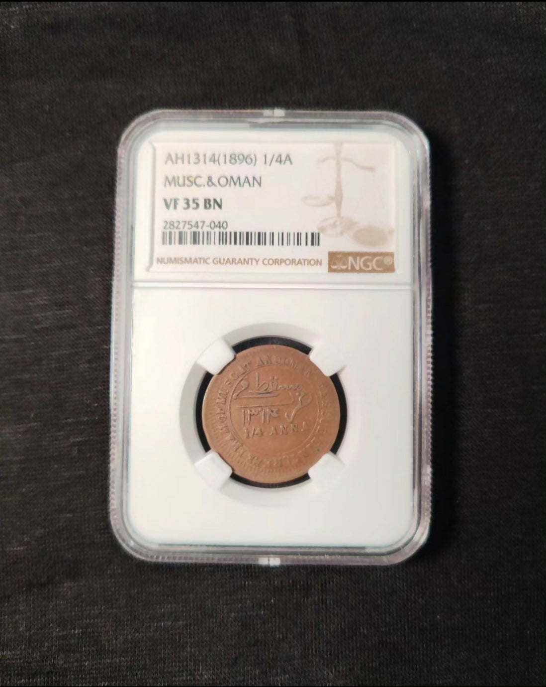 Muscat and Oman, 1896,1/4 Anna.ТОРРОР