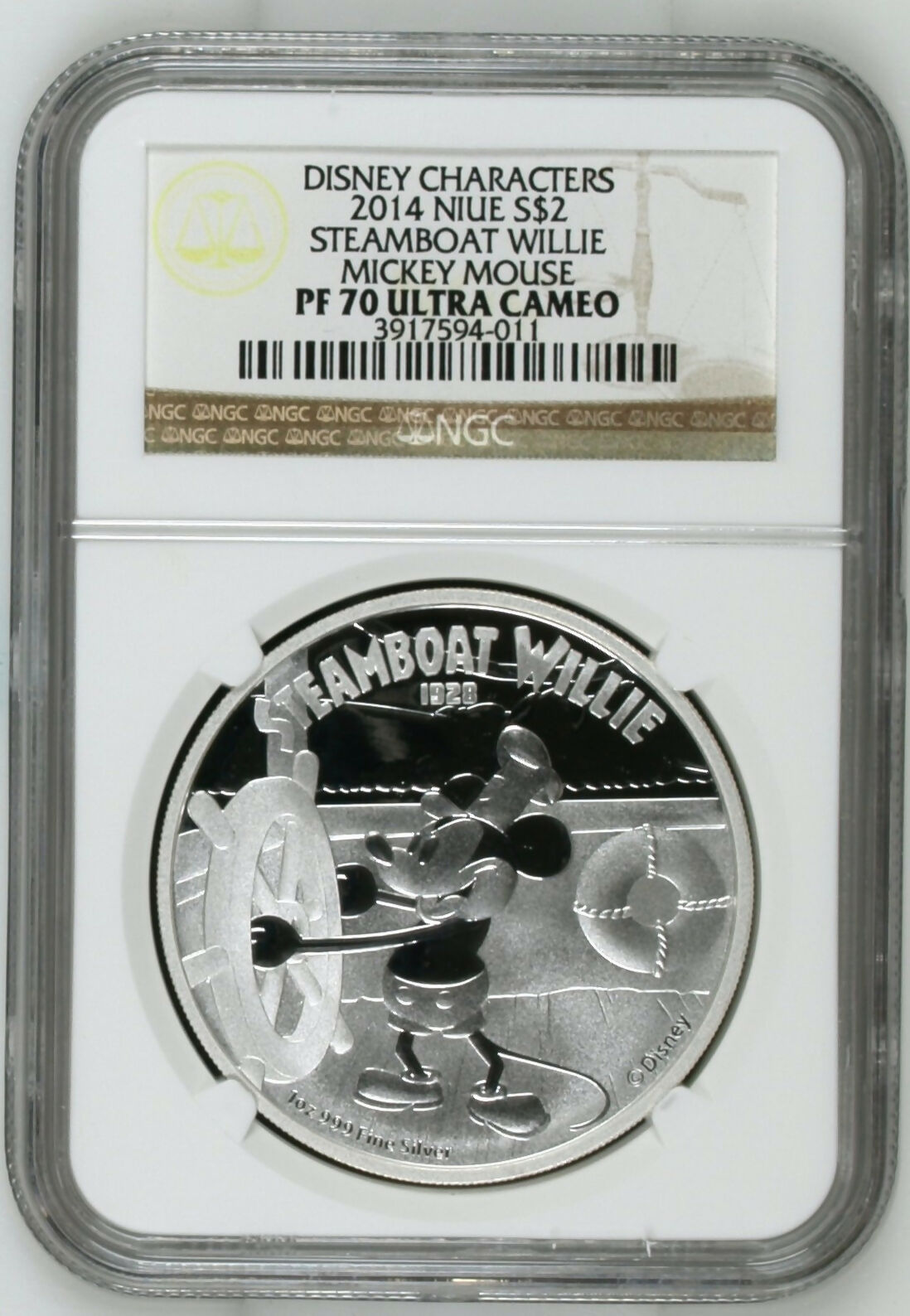 Niue: "Steamboat Willie - Mickey Mouse" 2 Dollars 2014