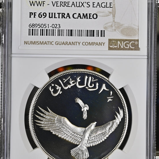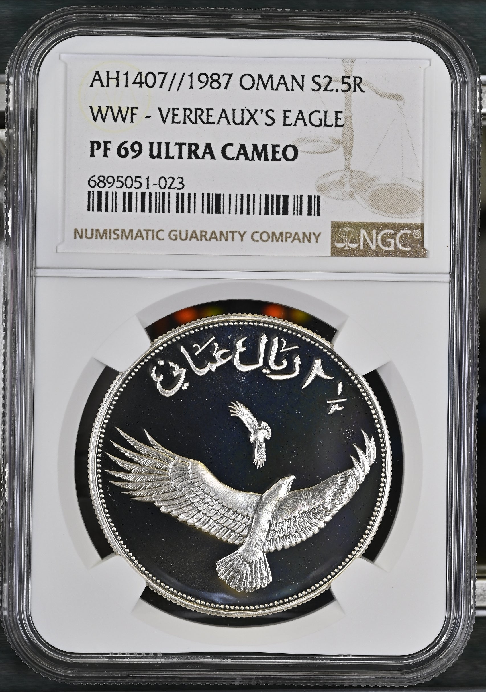 Oman - 1987 - Silver 2.5 Riyals - WWF Issue - Verreaux’s Eagle - NGC PF 69 ULTRA CAMEO