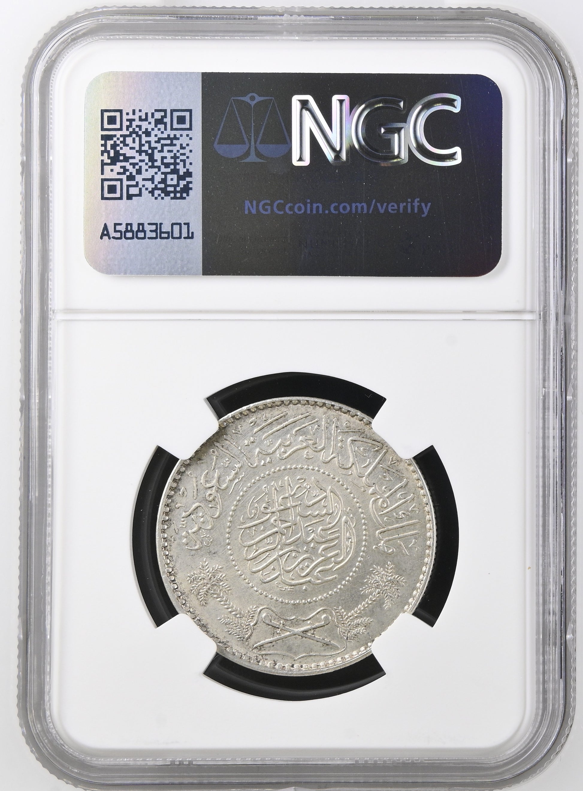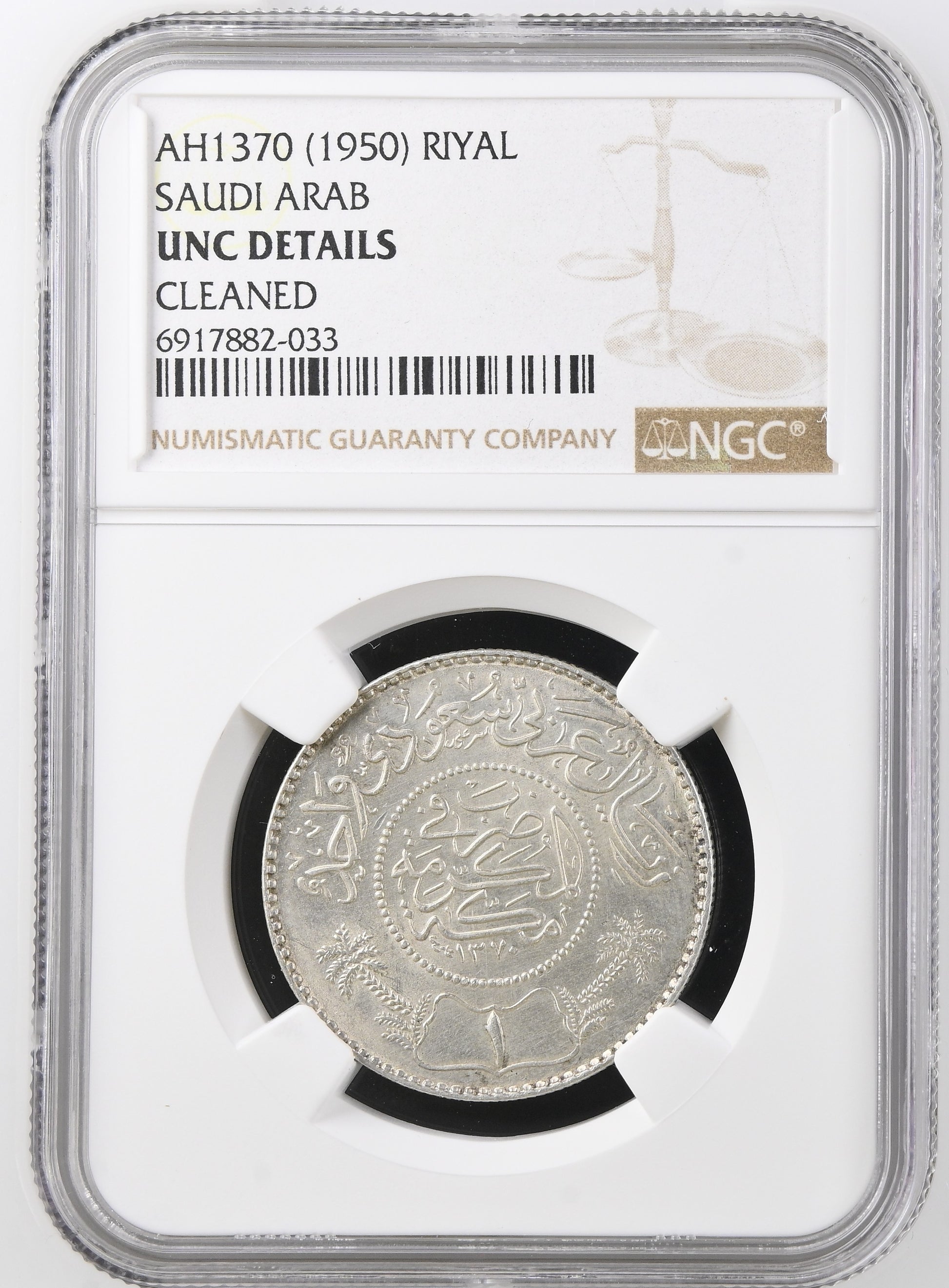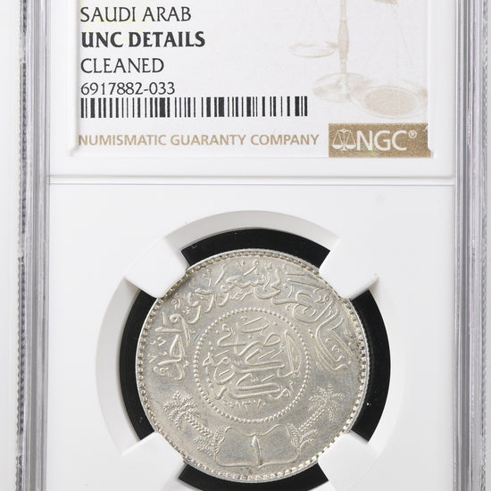 Saudi Arabia - AH 1370 (1950) - Silver 1 Riyal - NGC UNC DETAILS - CLEANED