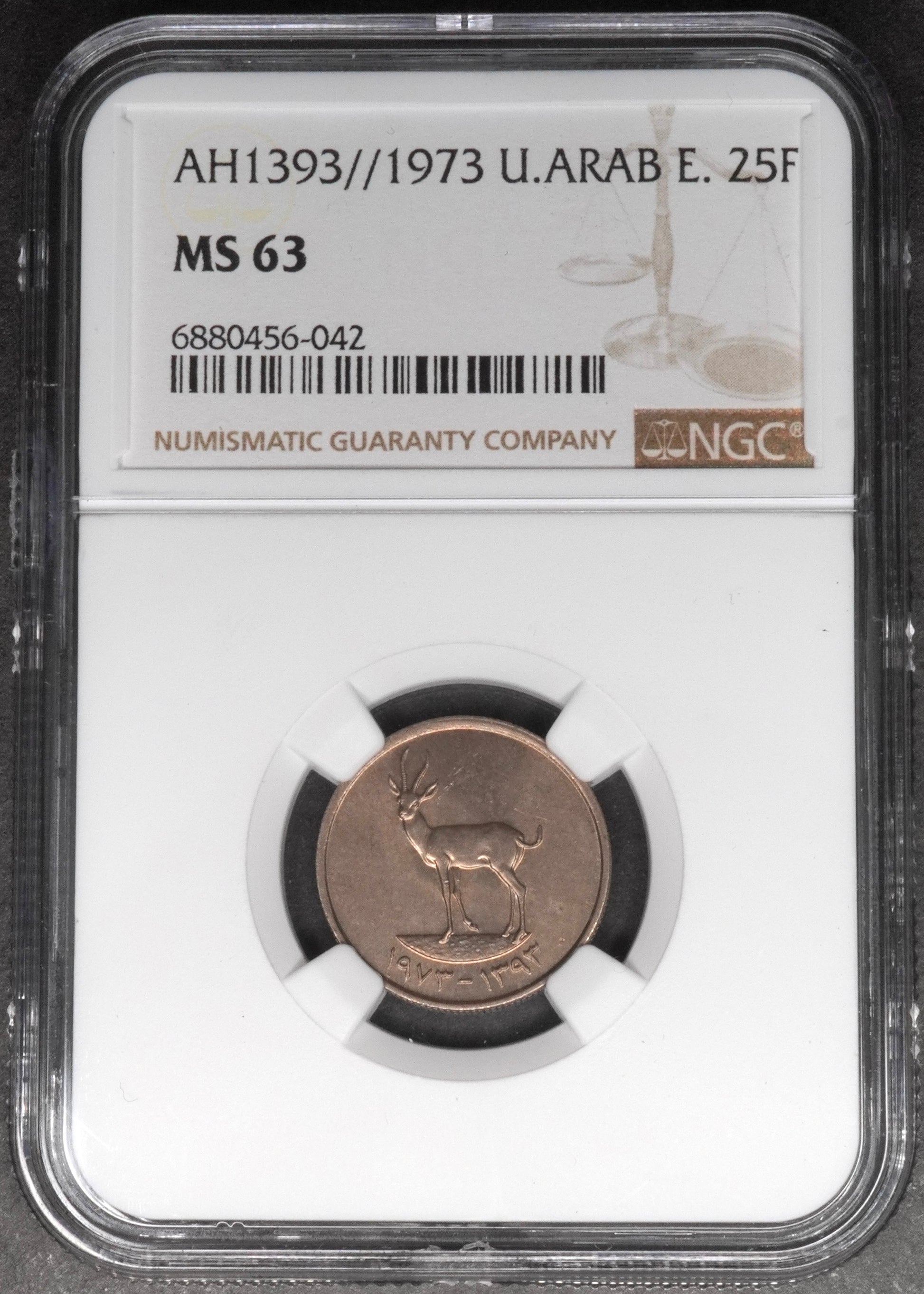 Lot 964: United Arab Emirates - 1973 - 25 Fils - NGC MS 63