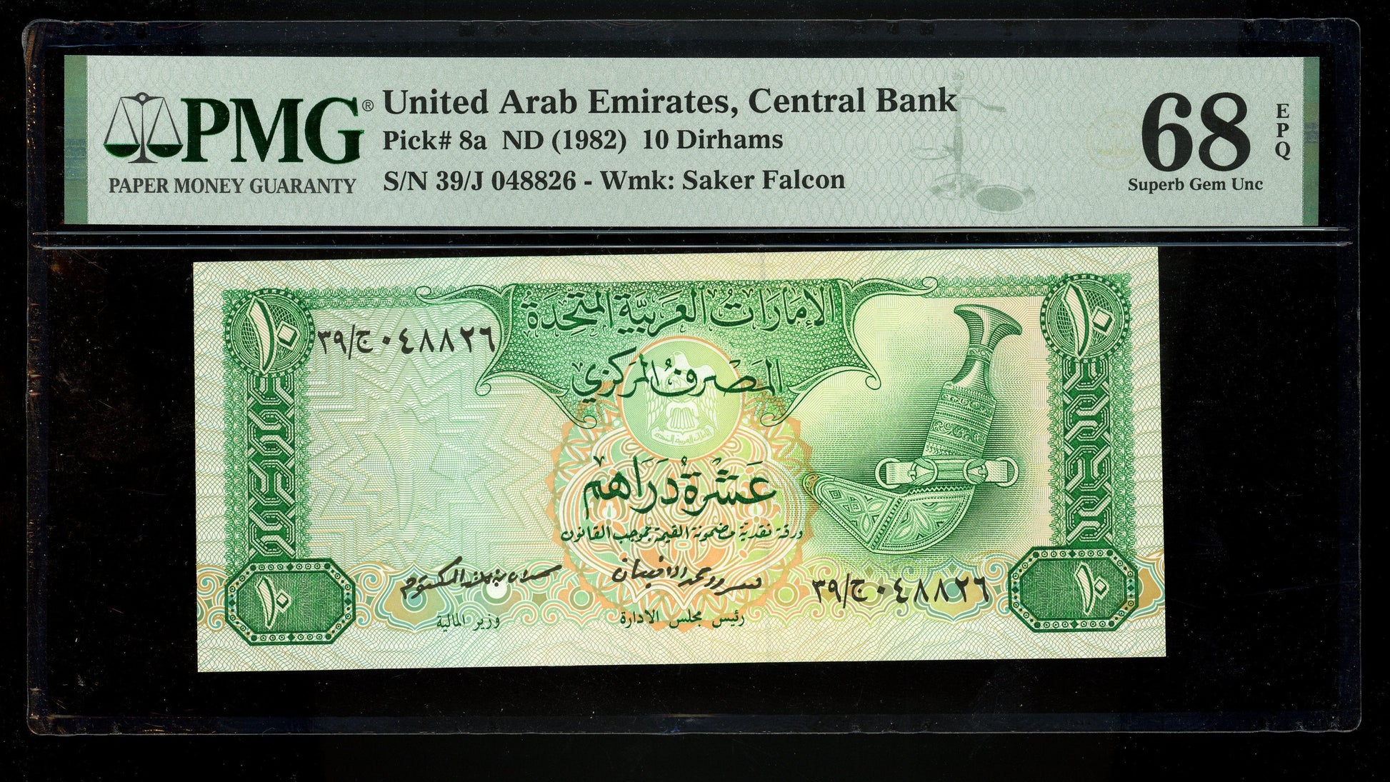 Lot 971: United Arab Emirates - 1982 - 10 Dirhams - PMG 68 EPQ