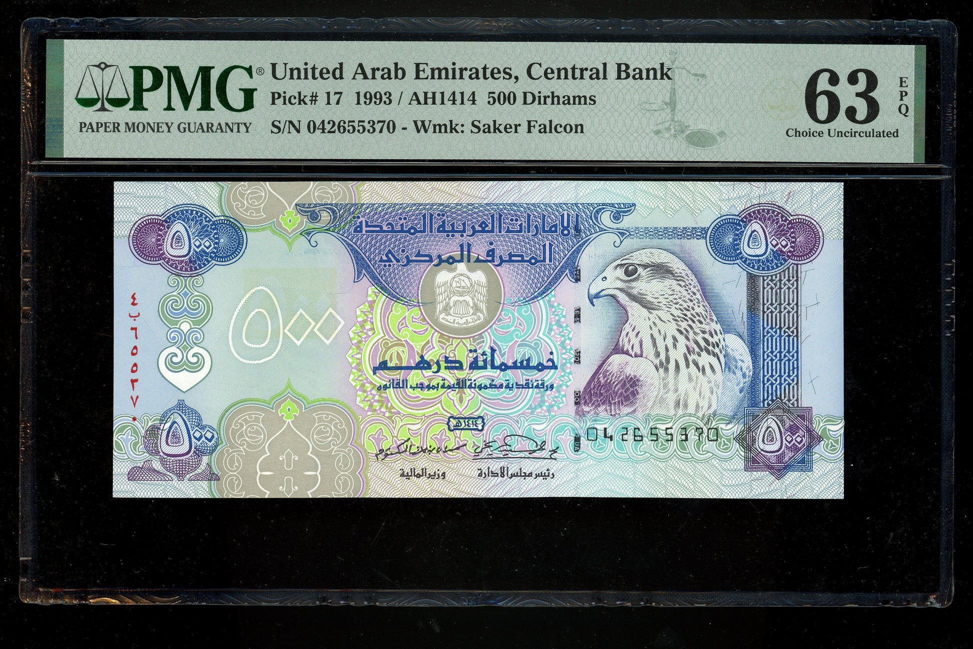 Lot 981: United Arab Emirates - 1993 - 500 Dirhams - PMG 63 EPQ
