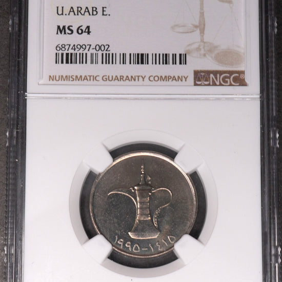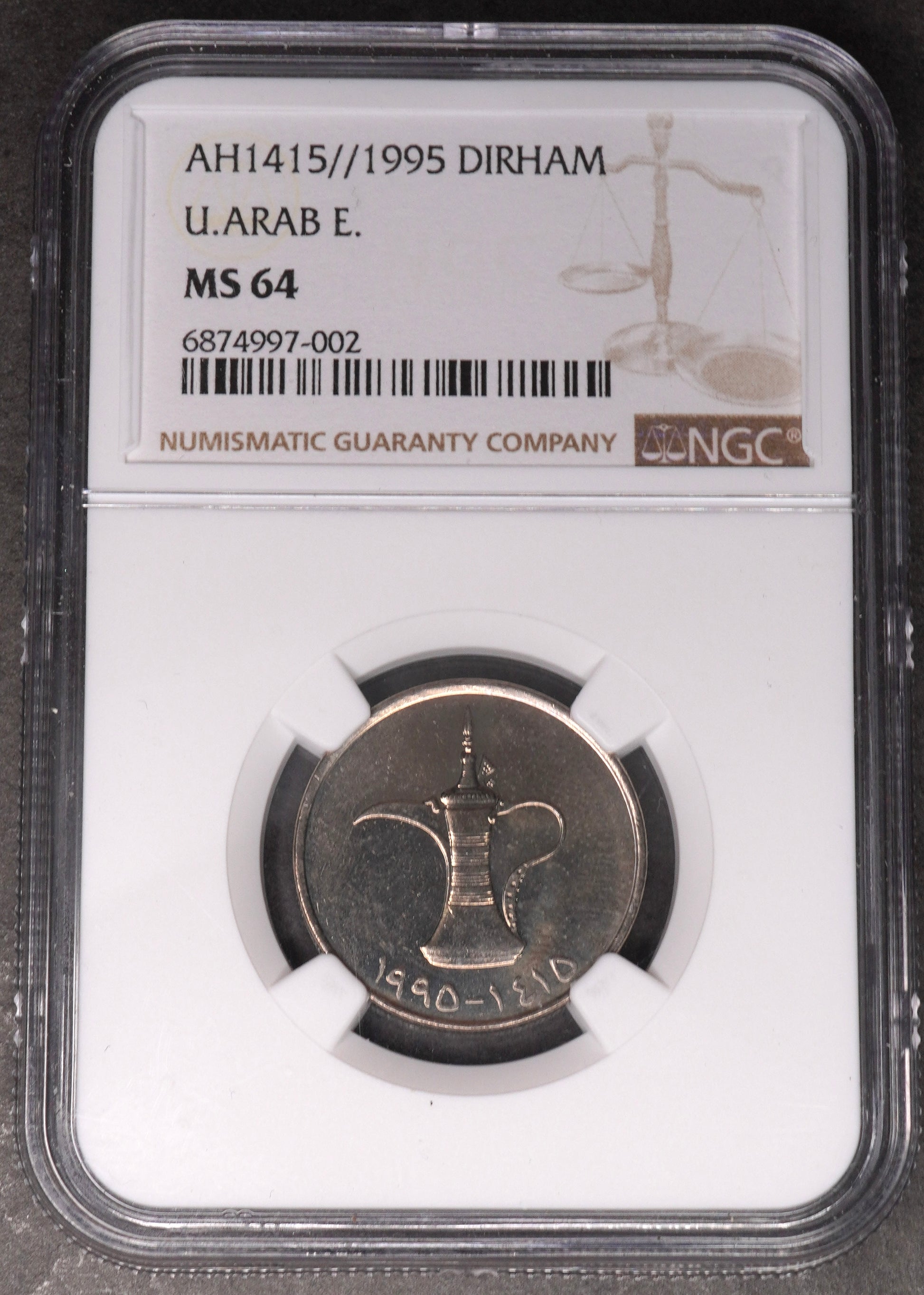 Lot 982: United Arab Emirates - 1995 - 1 Dirham - NGC MS 64