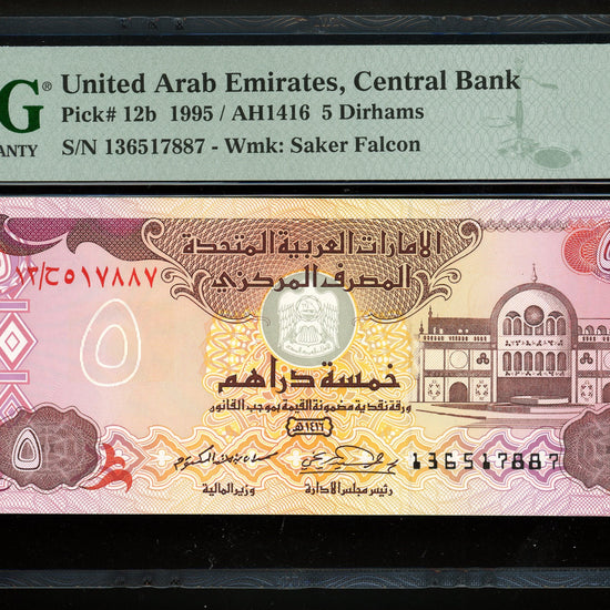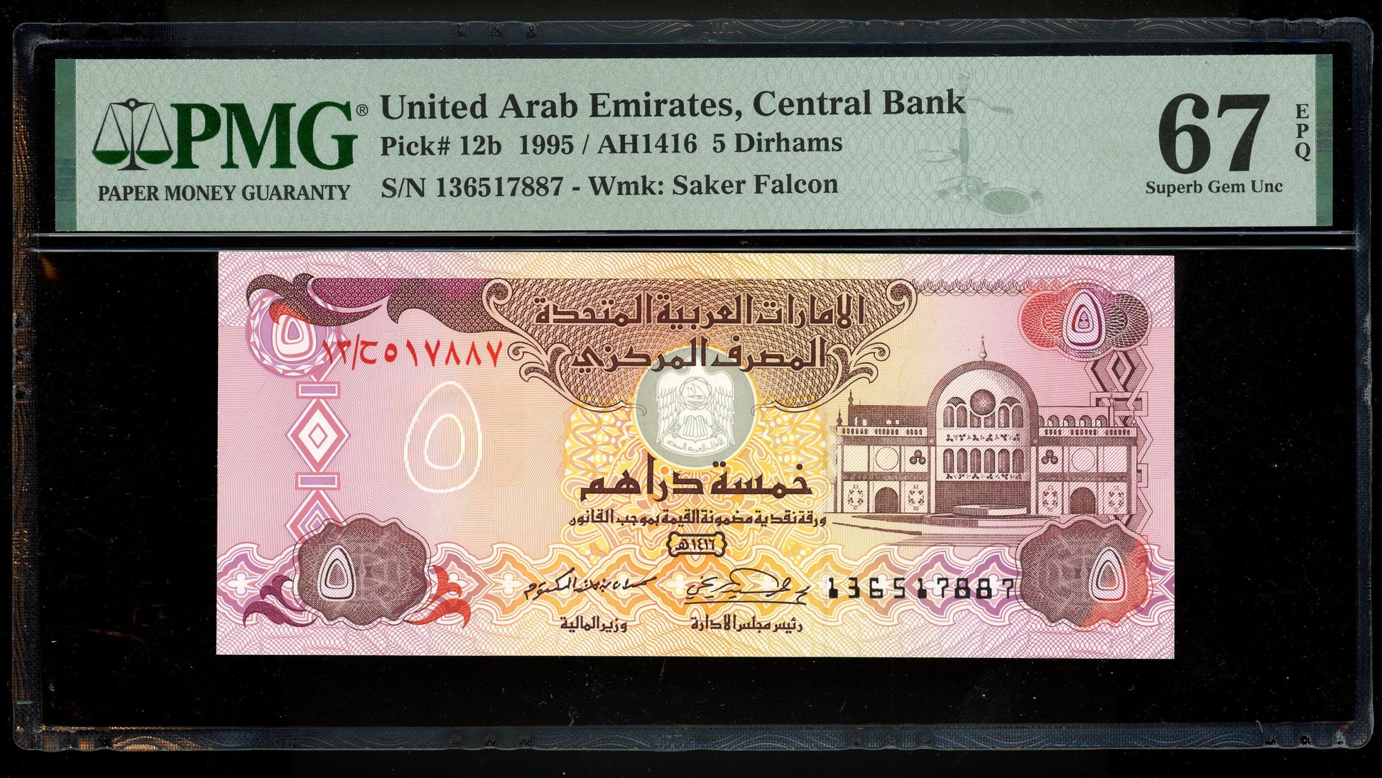 Lot 983: United Arab Emirates - 1995 - 5 Dirhams - PMG 67 EPQ - SECOND HIGHEST GRADE