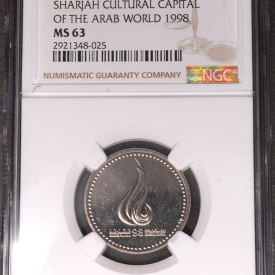 Lot 985: United Arab Emirates - 1998 - 1 Dirham - Sharjah Cultural Capital of the Arab World - NGC MS 63