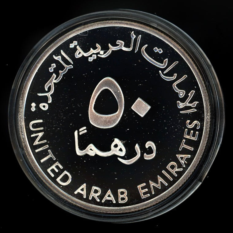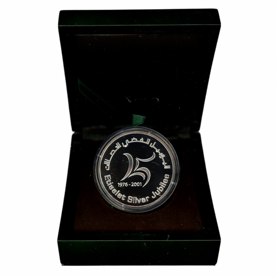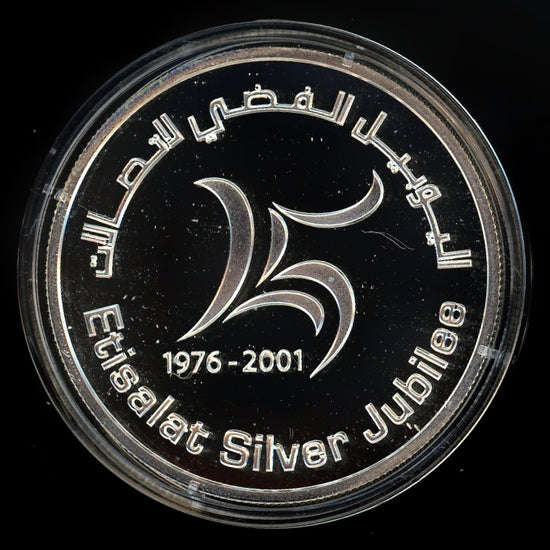 United Arab Emirates - 2001 - Silver 50 Dirhams - Etisalat 25th Anniversary - GEM UNC with original box