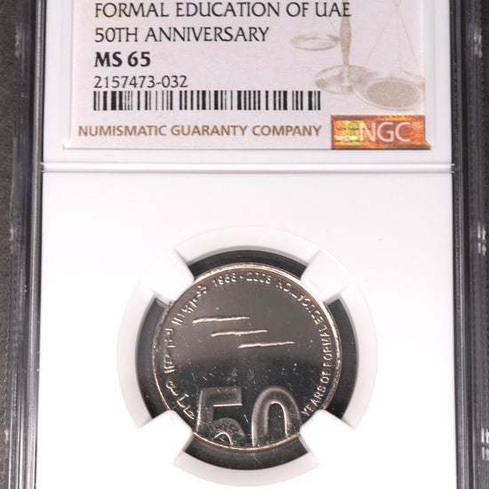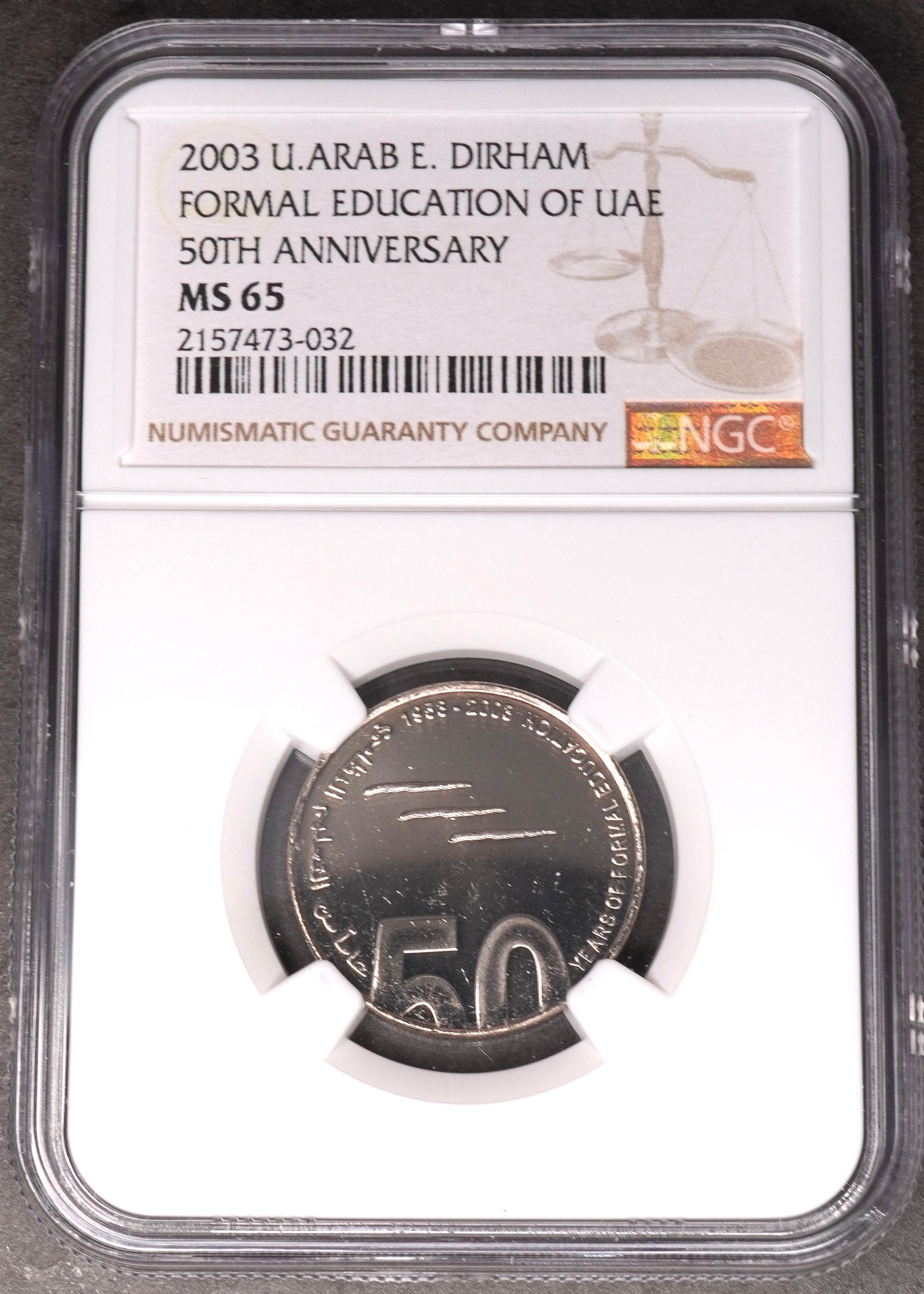 Lot 990: United Arab Emirates - 2003 - 1 Dirham - 50 years of Formal Education in the UAE - NGC MS 65