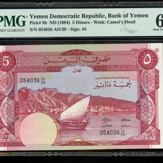 Lot 997: Yemen - ND (1984) - 5 Dinars - PMG 65 EPQ